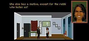 The Shivah is a point-and-click adventure game from 2006, designed and developed by Dave Gilbert with the assistance of others, including voice actors and artists. It is notable in that it features a rabbi as its protagonist and explores themes related to the Jewish faith. In 2013, the game was remastered in an updated version entitled The Shivah: Kosher Edition, which features new graphics and music, and re-recorded voice-overs.