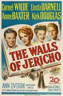 The Walls of Jericho is a 1948 American drama film directed by John M. Stahl, written by Lamar Trotti, and starring Cornel Wilde, Linda Darnell, Anne Baxter, Kirk Douglas, Ann Dvorak, Colleen Townsend and Marjorie Rambeau. The picture was released by 20th Century Fox on August 4, 1948.[2][3]