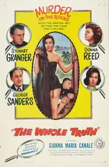 The Whole Truth is a 1958 British-American thriller film directed by John Guillermin and starring Stewart Granger, George Sanders, Donna Reed, Gianna Maria Canale and Peter Dyneley.[2] It was based on the 1955 play of the same title by Philip Mackie.