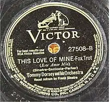 The Tommy Dorsey recording was released as a 78 RCA Victor B side single, 27508-B, with Frank Sinatra[2] on vocals backed with "Neiani", which did not chart. "This Love of Mine" reached #3 on the Billboard pop singles chart in 1941–42 in a chart run of 24 weeks.[3][4] Sinatra re-recorded the song with Nelson Riddle in 1955 for the In The Wee Small Hours album.