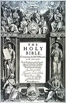 At the Hampton Court Conference of 1604, he and Richard Bancroft implored King James to change nothing in the Church of England.[36] He had in fact advised James in 1603 not to hold the Conference, and to leave religious matters to the professionals.[37] The advice might have prevailed, had it not been for Patrick Galloway, Moderator of the Scottish Assembly.[38] Later, in charge of the Authorized Version, he composed the front matter with Miles Smith, his share being the dedication.[39]
