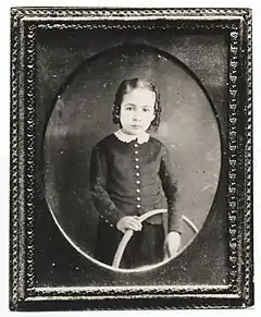 Eakins was born and lived most of his life in Philadelphia. He was the first child of Caroline Cowperthwait Eakins, a woman of English and Dutch descent, and Benjamin Eakins, a writing master and calligraphy teacher of Scottish and Irish ancestry.[5] His father grew up on a farm in Valley Forge, Pennsylvania, the son of a weaver. He was successful in his chosen profession, and moved to Philadelphia in the early 1840s, to raise his family. Thomas Eakins observed his father at work and by twelve demonstrated skill in precise line drawing, perspective, and the use of a grid to lay out a careful design, all skills he later applied to his art.[6]