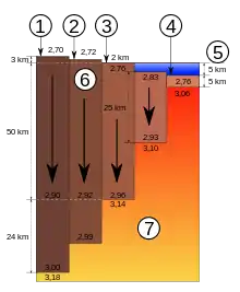 - Bailey Willis and William Bowie saw the sima with great strength and rigidity through the seismological studies, and tidal forces would act more on the sima (2800 to 3300 kg/m3) as it is denser than the sial (2700 to 2800 kg/m3) (Frankel 1987, p. 211).