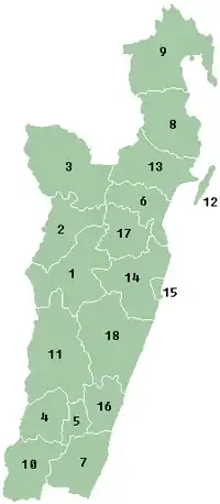 The provinces were abolished following the results of Malagasy constitutional referendum, 2007 which led to the formation of 22 smaller areas (faritra or regions) to facilitate regional development.[10]