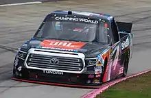 On January 17, 2018, KBM announced that Gilliland would compete for NASCAR Camping World Truck Series Rookie of the Year in 2018, driving the No. 4 Toyota Tundra beginning at Martinsville Speedway, and most of the races following that.[23] The series did grant Gilliland a waiver to become eligible for the NASCAR playoffs with a win, as drivers usually have to start every race to make the playoffs.[24] Gilliland started the 2018 season by holding off Harrison Burton to win the K&N Pro Series East season opener at New Smyrna Speedway, leading the most laps and winning on a last lap pass.[25] He also won the second K&N East race of the season, triumphing at Bristol Motor Speedway for his 20th overall win in K&N Pro Series competition, also having won races in the NASCAR K&N Pro Series West.[26]