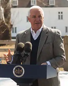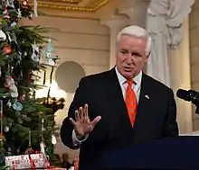 Corbett assumed the office of governor on January 18, 2011, succeeding term-limited Democrat Ed Rendell.[28] As governor, Corbett maintained a conservative profile; he endorsed Mitt Romney in the 2012 United States presidential election, enforced tax cuts, and cut spending.[29][30][31]