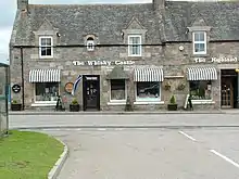 The primary retailers for tourists include the Tomintoul Gallery that sells work created by local artists, the A’anside Studios that sell arts and crafts and the Whisky Castle, which offers hundreds of single malts.[14] The Castle has operated for over a century and offers whisky from every major distillery as well as some rare products from distilleries no longer in operation. The Tomintoul Distillery, in nearby Ballindalloch provides some employment; the company has been making whisky here for many decades. There is no visitor centre but some visits are allowed, by prior appointment.[15]