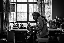 ![]() Núñez in his workshop in Victoria de Durango, Mexico | |