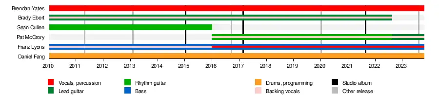 On August 12, 2022, the band announced via Instagram that they had parted ways with guitarist Brady Ebert, a couple of months ahead of their fall headlining tour.[17] Before this, Ebert had notably been absent from the band's tours, and had been replaced by Greg Cerwonka of Take Offense.[18]