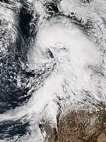 Typhoon Songda was the sixth most intense tropical cyclone of the Northwest Pacific Ocean in 2016. Also known as the Ides of October storm, it struck the Pacific Northwest region of the United States and Canada as a powerful extratropical cyclone.[1] Songda was the twentieth named storm and the ninth typhoon of the annual typhoon season. The system developed into a tropical storm south of Minamitorishima on October 8 and strengthened into a typhoon on October 10. Songda reached its peak intensity southeast of Japan late on October 11 at an unusually high latitude, before it became extratropical on October 13.