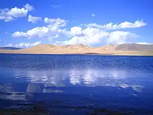 the area is a cold semi-desert. A number of rare waterbirds have been noted at the site, including the endangered White-headed duck (Oxyura leucocephala), the vulnerable Great bustard (Otis tarda), and the vulnerable White-throated bush chat (Saxicola insignis).[2]