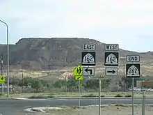 The State Road Commission created SR-262 in 1958, running from SR-47 (now US-191) north of Bluff east and south for 20.0 miles (32.2 km) to a point in the Aneth Oil Field about a mile (1.5 km) beyond the bridge over Montezuma Creek, near the curve to the south-southwest. In 1961, the route was extended to just beyond its present end in the settlement of Montezuma Creek, where the road to Aneth (now SR-162) turns east, and in 1965 it was extended further to the Colorado state line, connecting to SH 41 across the border.[2] A road from Montezuma Creek west to US-191 at Bluff was added to the state highway system in 1986 as SR-163.[3] At the time, Utah was considering making the road part of an extension of US-163 into Colorado,[4] but plans fell through, leaving an overlap with US-191 and Route 163 near Bluff that became US-163 to the west and SR-163 to the east. To fix this issue, SR-163 was renumbered SR-162 in 2004, and the part of SR-262 east of Montezuma Creek also became SR-162.[2]