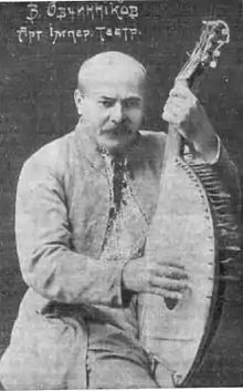 Vasyl' Pavlovych Ovchynnikov or Ovchinnikiv (1868–1934) was a performing artist in the Moscow Theatre (Bolshoi?). A renowned singer he was also a popularizer of the bandura at the turn of the century. He is also remembered as the author of one of the first Bandura handbooks.