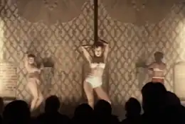 The video follows themes discussed in the song, particularly sexual exploitation of women.[18] According to Love, the content of the video was inspired by "acid flashbacks" and "old film stock".[29] "I love old pornography," Love said, "But I wanted to at the same time, you know... all of the [music] videos for years that have put stripping or half-naked women on a pedestal, I wanted to sort of show the degrading experience that it is."[29] Siegel notes that the music video replays Love's "well-known past as a stripper through performances that are more threatening than erotic."[18] An article in Spin described the aged footage in the video as avant-garde.[30] Many of the scenes in the video aesthetically mimic early-20th century silent films and talkies, with faux-aged cinematography and lapses in audio and visual synchronization.[30]