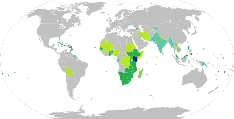 Visa requirements for Kenyan citizens are administrative entry restrictions by the authorities of other states placed on citizens of Kenya. As of 09 October 2023, Kenyan citizens had visa-free or visa on arrival access to 69 countries and territories, ranking the Kenyan passport 74th in terms of travel freedom (tied with the passport of the People's Republic of China) according to the Henley Passport Index.[1]