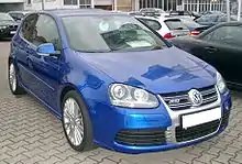 Volkswagen began production of the Mk4 R32 in 2002, for the 2003 model year. It was the world's first production car with a dual-clutch gearbox (DSG) — available for the German market.[2] Due to unexpected popularity, Volkswagen decided to sell the car in the United States and Australia as the 2004 model year Volkswagen R32. Billed as the pinnacle of the Golf IV platform, the R32 included every performance, safety, and luxury feature Volkswagen had to offer, including the all new 3,189 cc (3.2 L; 194.6 cu in) DOHC 4 valves per cylinder VR6 engine (ID codes: BFH/BML), which produced a rated motive power output of 241 PS (238 bhp; 177 kW) at 6,250 rpm and 320 N⋅m (236 lb⋅ft) at 2,800 rpm of torque.[3] Further additions included Haldex Traction-based 4motion on-demand four-wheel drive system, a new six-speed manual transmission, independent rear suspension, Climatronic automatic climate control, sport seats from König with R32 badging, 18" OZ Aristo alloy wheels (Ronal produced the wheels towards the end of production), Electronic Stability Programme, larger 334 mm (13.1 in) disc brakes with gloss blue painted calipers, sunroof (for the US), Xenon Headlamps (for Europa), and model-specific bodywork additions.