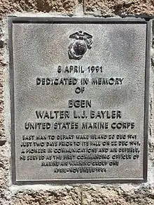Walter Lewis John Bayler (8 April 1905 – 8 December 1984) was a brigadier general in the United States Marine Corps who was famed during World War II as the "Last Man Off Wake Island" and the only American to see combat at Wake Island, Midway and Guadalcanal. A naval aviator and communications engineer, he was at the forefront of the Marine Corps' use of radar for early warning and fighter direction. He was one of the driving forces behind the Marine Corps' establishment of an air warning program and served as the first commanding officer of the 1st Marine Air Warning Group (1st MAWG).[1]
