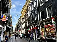 Warmoesstraat ('Chard Street') is one of the oldest streets in Amsterdam, running parallel to Damrak from Nieuwebrugsteeg to Dam Square. Its origins are in the 13th century. In the 16th and 17th century it was the shopping street. During the Dutch Golden Age, the father of legendary poet and playwright Joost van den Vondel ran a business as a silk merchant there.[1]