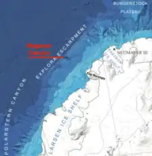 Wegener Canyon (70°45′S 14°0′W) is a submarine canyon named for Alfred Wegener. It is located between Kap Norvegia and the Explora Escarpment as a feature for sediment transport at the Antarctic continental margin. The Canyon was mapped during various expeditions of the German research vessel RV Polarstern with a swath sonar system. The name was proposed by Hans Werner Schenke, Alfred Wegener Institute for Polar and Marine Research, Bremerhaven, Germany. Name approved 7/89 (ACUF 233).