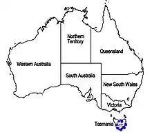 | Known range of Westringia angustifolia (in blue) | |