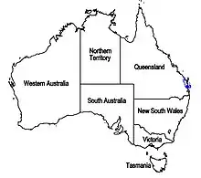 | Known range of Westringia tenuicaulis (in blue) | |