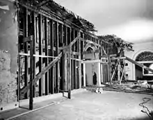 On January 30, 1948, the president received a confidential report from the Commissioner of Public Buildings warning of the "imminent collapse" of the second floor of the mansion.[11] In February, the president invited the president of the American Institute of Architects, Douglas Orr, and the president of the American Society of Civil Engineers, Richard E. Dougherty, to "make a structural survey of the safety of the White House". Their one-day investigation concluded with a report issued that same day which said the second floor structure was a fire hazard and was in danger of collapse.[8]