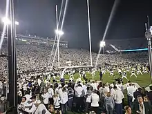 Perhaps the most influential White Out was Penn State's 24–21 upset win over No. 2 Ohio State in 2016, which is regarded by many as the best game in Penn State football history.[4] The pivotal play, Grant Haley's blocked field goal return in the 4th quarter, was voted as the best Penn State play of the century.[5] The game's aftermath included fans storming the field at Beaver Stadium and celebratory riots in downtown State College. Their White Out rematch two years later, a 27–26 loss, would break the Beaver Stadium attendance record, edging out the previous record (the 2017 White Out against Michigan, a 42–13 victory) by less than 70 attendees.