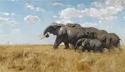 Friedrich Wilhelm Kuhnert (September 18, 1865 – February 11, 1926) was a German painter, author and illustrator, who specialized in animal images. After illustrating the books of Alfred Brehm, he travelled to German East Africa to observe animals in their habitat and produced numerous paintings that defined Africa for many Germans of the period.