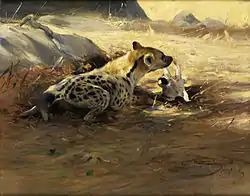 Contrary to the practice of his peers, Kuhnert distinguished himself by sketching tropical animals in the wild, not in zoos. He made pictures by sketching, etching, watercolor, and oil painting. Kuhnert is considered one of the most important German animal painters of his time. Kuhnert was a keen and skilled hunter himself; he returned to Africa year after year in the hunt for both game and subjects for his art.[2]