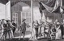 Rogers (right) receives a map of New Providence Island from his son, in a painting by William Hogarth (1729)
