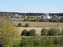 A new sludge treatment facility was built at the sewage works in the 2010s. Sludge from Worksop sewage works and several other sewage works in the locality was transported by road to Stoke Bardolph, where it was used to generate energy. In order to reduce the number of trips by tankers carrying the sludge, Worksop was chosen as a central location for Severn Trent's northern area, and therefore the site for the new facility, which cost £15 million. To reach the site, lorries had to pass through a residential area, and a new access road was constructed as part of the project to avoid this.[23] The road crossed the Chesterfield Canal by a single span concrete bridge, which was clad with masonry to make it look more traditional, and had to avoid damaging an area to the south of the canal which provides habitat for water voles. It also crossed the River Ryton using a four-span viaduct, with each span being 59 feet (18 m) long.[24] The sludge treatment plant consists of an acid phase digester, which pre-treats the sludge to allow the two downstream gas phase digesters to break down the sludge more completely. The plant can process 450 cubic metres of sludge per day, and the gas produced is used to generate power.[25] The new facility is designed to handle a maximum of 10,209 tonnes of dry solids per year, 80 per cent of which is delivered to the site by road tankers. It was designed and constructed by the civil engineers Mott MacDonald Bentley,[26] with commissioning taking place during the winter of 2014/2015.[27]