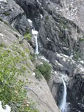 ![]() Upper and lower cascades of Yosemite Falls, as seen from Yosemite Valley. | |