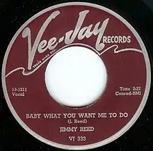 In 1960, "Baby What You Want Me to Do" reached number 10 on the Billboard Hot R&B Singles chart and number 37 on the magazine's Hot 100.[6] In 2004, Reed's song was inducted into the Blues Foundation Hall of Fame in the "Classic of Blues Recordings" category.[2] Herzhaft identifies the song as a blues standard.[5] Koda commented: "Baby What You Want Me to Do" "was already a barroom staple of blues, country, and rock & roll bands by the early '60s"[4]