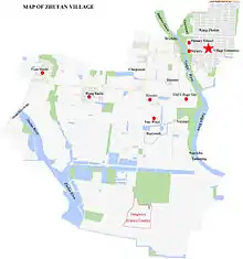 The village is located in the low flat plain between Zhufan and Tangzi rivers. The river serves as the boundary between the villages.