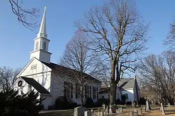 When Northern Boulevard (Route 25A) was being widened and straightened in the early 1930s, the graves of numerous Matinecoc Indians were disturbed. The remains were re-buried in the churchyard of Zion Church in 1931 beneath a monument consisting of a tree growing between a large boulder that had been split in half. The inscription reads: "Here rest the last of the Matinecoc."[3]