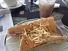 - A particular kind of meat-and-cheese sandwich made on Cuban bread.