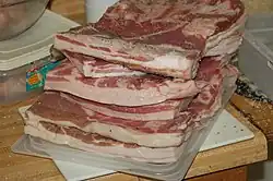 From Middle High German spëc, from Old High German spek, from Proto-West Germanic *spik.