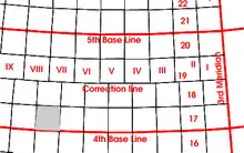 A diagram of Canada’s w:Dominion Land Survey, showing a correction line.