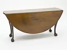 - A table having a hinged section that can be fixed in a horizontal position to extend the table and folded down when not needed.