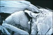 - (entomology) A small knobbed structure in some two-winged insects, one of a pair that are flapped rapidly and function as accelerometers to maintain stability in flight.