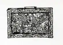 A drawing of a minaudière (sense 2) by David Ring, from the collection of the ModeMuseum Provincie Antwerpen (Fashion Museum of the Province of Antwerp) in Antwerp, Belgium