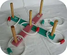 - A ring of rubber or rope similarly used in the game of deck-quoits.