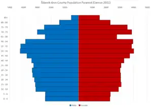 According to the 2011 census, Šibenik-Knin County has a population of 109,375.[2] Croats make up a majority with 87.39% of the population. The Serbs are the second largest ethnic group (10,53%).[6]