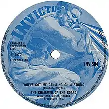 "(You've Got Me) Dangling on a String" is a 1970 soul music song by the Chairmen of the Board. The single reached No. 38 on the US Billboard Hot 100,[1] No. 19 on the US Billboard R&B chart, and No. 5 on the UK Singles Chart.[2] The song was written by Ronald Dunbar and Edythe Wayne.
