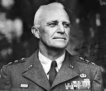 The 11th Airborne's next operation took place on 23 June in the province of Aparri in northern Luzon.[66] By this time the only Japanese forces remaining on the island were positioned to the far north and belonged to the 52,000-strong Shobu Group.[66][67] This last of General Yamashita's three groups proved to be the most tenacious, forcing Lieutenant-General Walter Krueger, commander of the Sixth United States Army, to commit four infantry divisions, an armored task force and a large band of the Filipino recognized guerrillas. While these forces pinned down the Japanese, the 37th Infantry Division began an advance northwards, defeating a weaker formation and encircling the main Japanese force. To ensure the success of the 37th's drive, Krueger called for an airborne force to land near Aparri and move southwards to meet the advancing 37th.[68]
