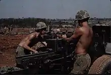 In 1965 the United States government committed its 173rd Airborne Brigade to South Vietnam in a combat role. Being part of the ANZUS pact Australia and New Zealand were asked to contribute military forces too. Up until this time the Australians had committed an Army training team and New Zealand had committed some non-combatant engineers. In response to the United States' request, the Australian government committed an infantry battalion and New Zealand committed an artillery battery. 161 Field Battery, RNZA arrived in South Vietnam on 16 July 1965. The Australian infantry regiment and the New Zealand artillery battery served under operational control of the 173rd Airborne in Biên Hòa Province.[18] 161 Bty was attached as the third battery of the US 3rd Battalion, 319th Field Artillery Regiment.[19][20] The battery began its first major operation on 14 September 1965. Sergeant Alastair John Sherwood Don and Bombardier Robert White of 161 Bty were the first New Zealand casualties of the Vietnam War when the front of their vehicle was blown up by a Vietcong command detonated mine during the initial road convoy on Operation Ben Cat.[21]