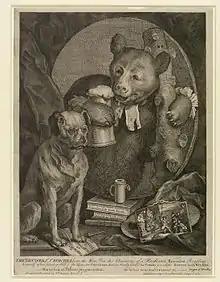 - An Epistle to William Hogarth[1] was in answer to the caricature of Wilkes made during the trial. In the poem, Churchill attacked Hogarth's vanity and envy with an invective which David Garrick quoted as shocking and barbarous. Hogarth retaliated with a caricature of Churchill as a bear in torn clerical bands hugging a pot of porter and a club made of lies and North Britons.