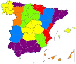 | Andalusia | Almería, Cádiz, Córdoba, Granada, Huelva, Jaén, Málaga, Sevilla |