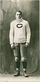 The only two individuals who have been recognized as "official" selectors by the National Collegiate Athletic Association (NCAA) for the 1908 season are Walter Camp and Caspar Whitney, who had originated the College Football All-America Team 14 years earlier in 1889.[2] In its official listing of "Consensus All-America Selections," the NCAA designates players who were selected by either Camp or Whitney as "consensus" All-Americans.[2] Using this criteria, the NCAA recognizes 16 players as "consensus" All-American for the 1908 football season.[2] The consensus All-Americans are identified in bold on the list below ("All-Americans of 1908").