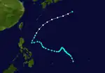 A storm developed in the Philippine Sea and east of Visayas, Philippines on May 10. It strengthened into a typhoon during its lifecycle but it is unknown of where it reached its intensity. The storm finally dissipated on May 20.[9]